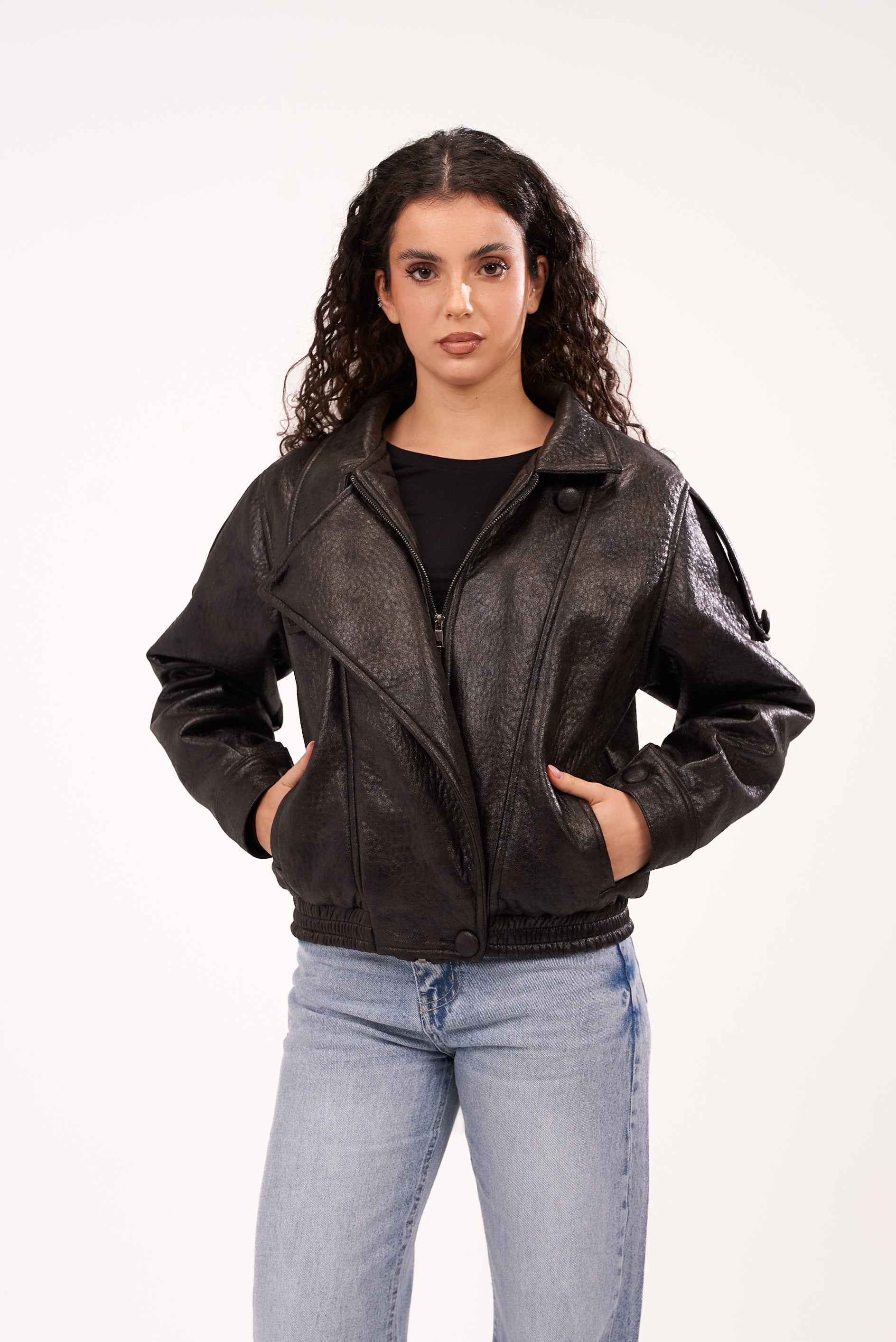 A modern take on the classic biker jacket. The Faded-Black Biker Leather Jacket is crafted from premium matte leather with a rich texture and a soft padded lining for added warmth and comfort. its structured yet relaxed silhouette makes it a versatile statement piece that transitions effortlessly between edgy and refined looks.