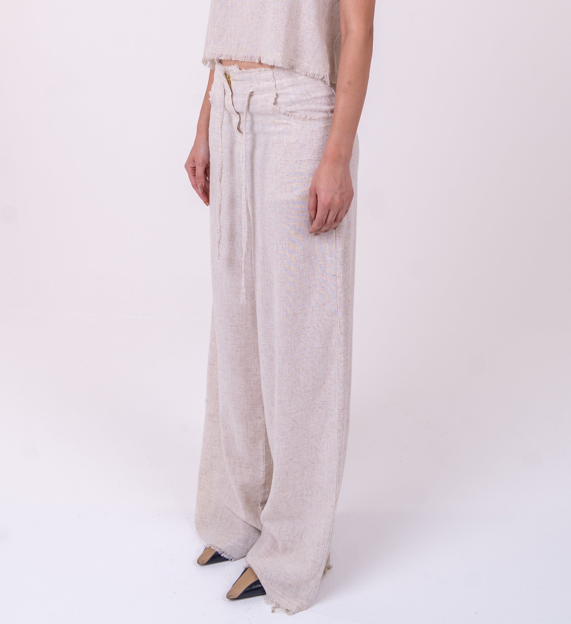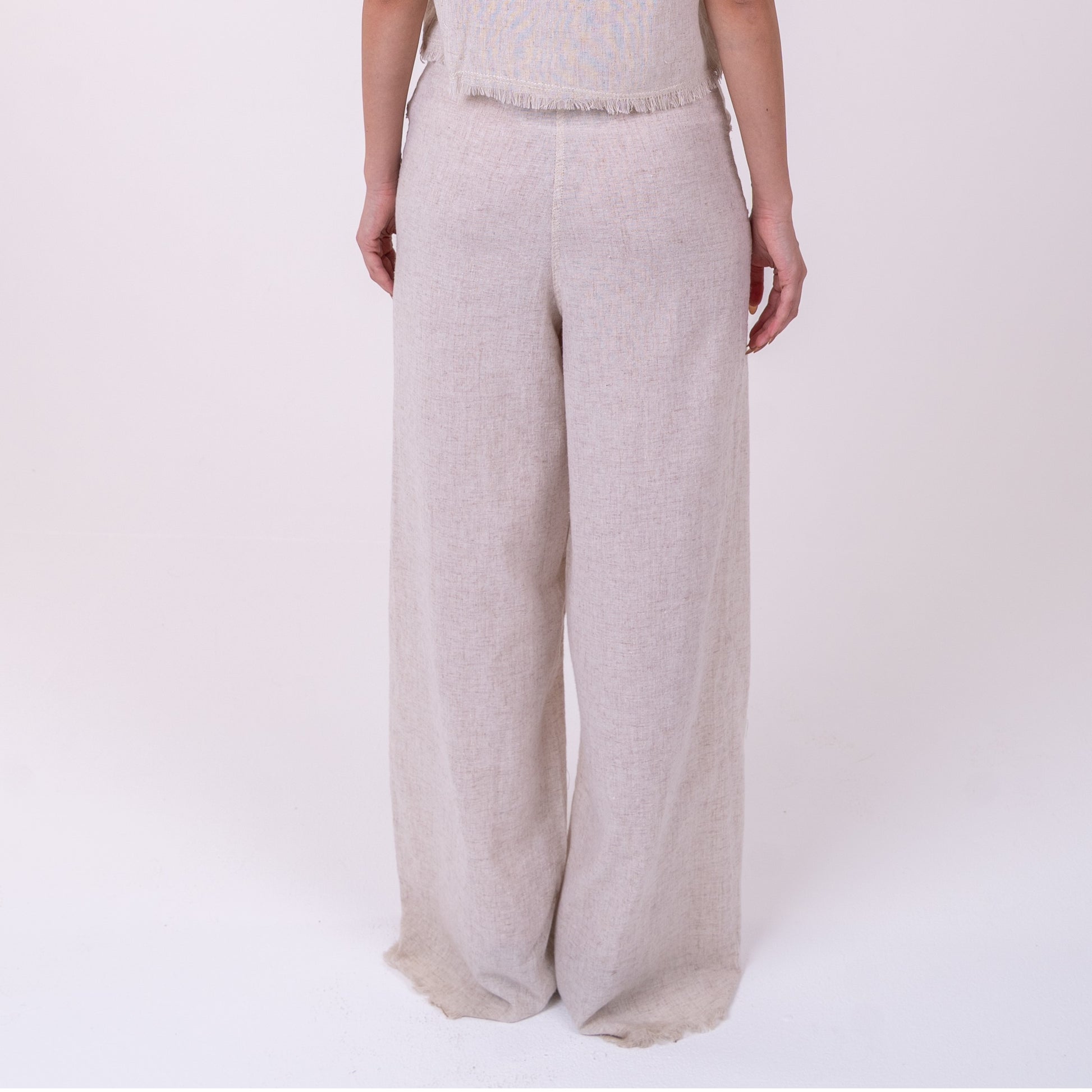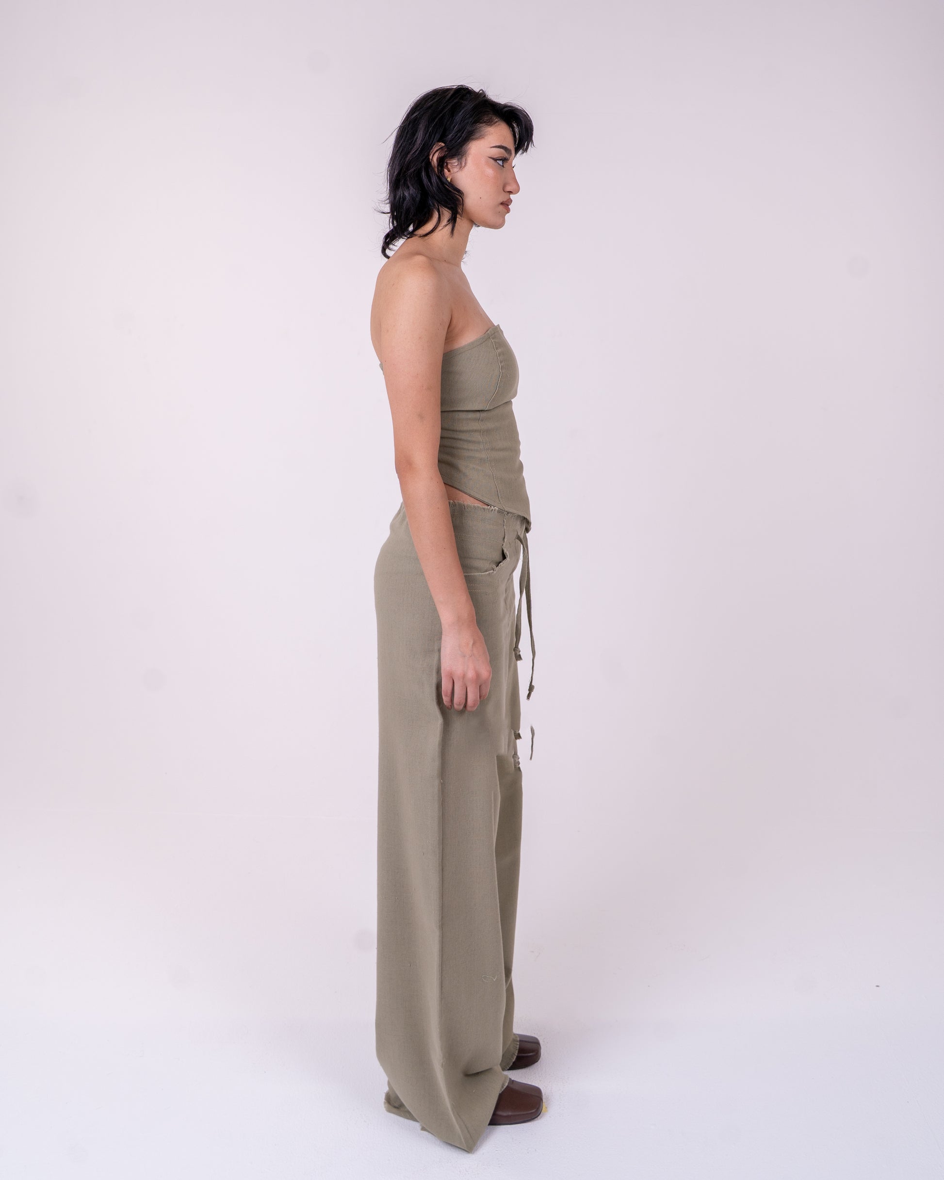 Timeless a very Light Linen Wide-Leg Pants and Strapless Corset Double-Layered Linen Top in Olive Green Color with a flattering loose fit for a relaxed yet refined look, perfect for everyday wear.
